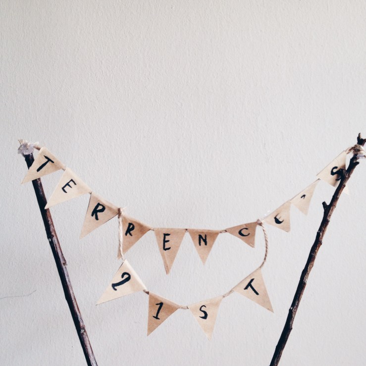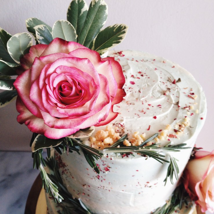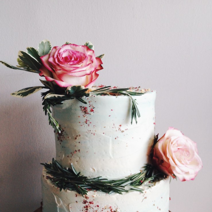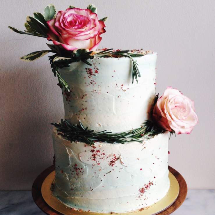 We’ve had the absolute pleasure of creating this rustic cake. T asked for the colours to emulate a cross processed photo. We chose to use teal and ivory and a gorgeously bright pink kenya rose to help the colours pop! We also customized a bunting with twigs, kraft paper and twine. The flavours housed under the buttercream are rose, raspberry and pistachio and millionaire’s chocolate cake. We hope you enjoyed this T! Happy birthday!