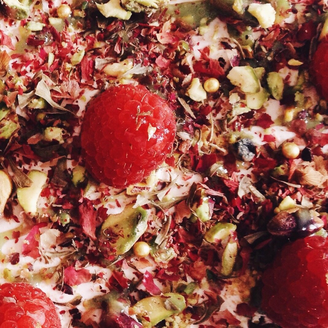 We’ve had the absolute pleasure of creating this rustic cake. T asked for the colours to emulate a cross processed photo. We chose to use teal and ivory and a gorgeously bright pink kenya rose to help the colours pop! We also customized a bunting with twigs, kraft paper and twine. The flavours housed under the buttercream are rose, raspberry and pistachio and millionaire’s chocolate cake. We hope you enjoyed this T! Happy birthday!