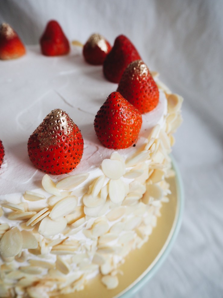 I absolutely adore a good ol’ strawberry shortcake. Genoise sponge, (unstabilized) whipped cream and fresh strawberries. The recipe that I’ve posted below uses a different technique which I honestly feel is much more stable and easier than whisking a bowl over a bain marie to thicken the whole eggs. This recipe requires you to separate your eggs, make a meringue, then fold in the yolks. It does however, yield a slightly denser cake, but I actually prefer it this way!
