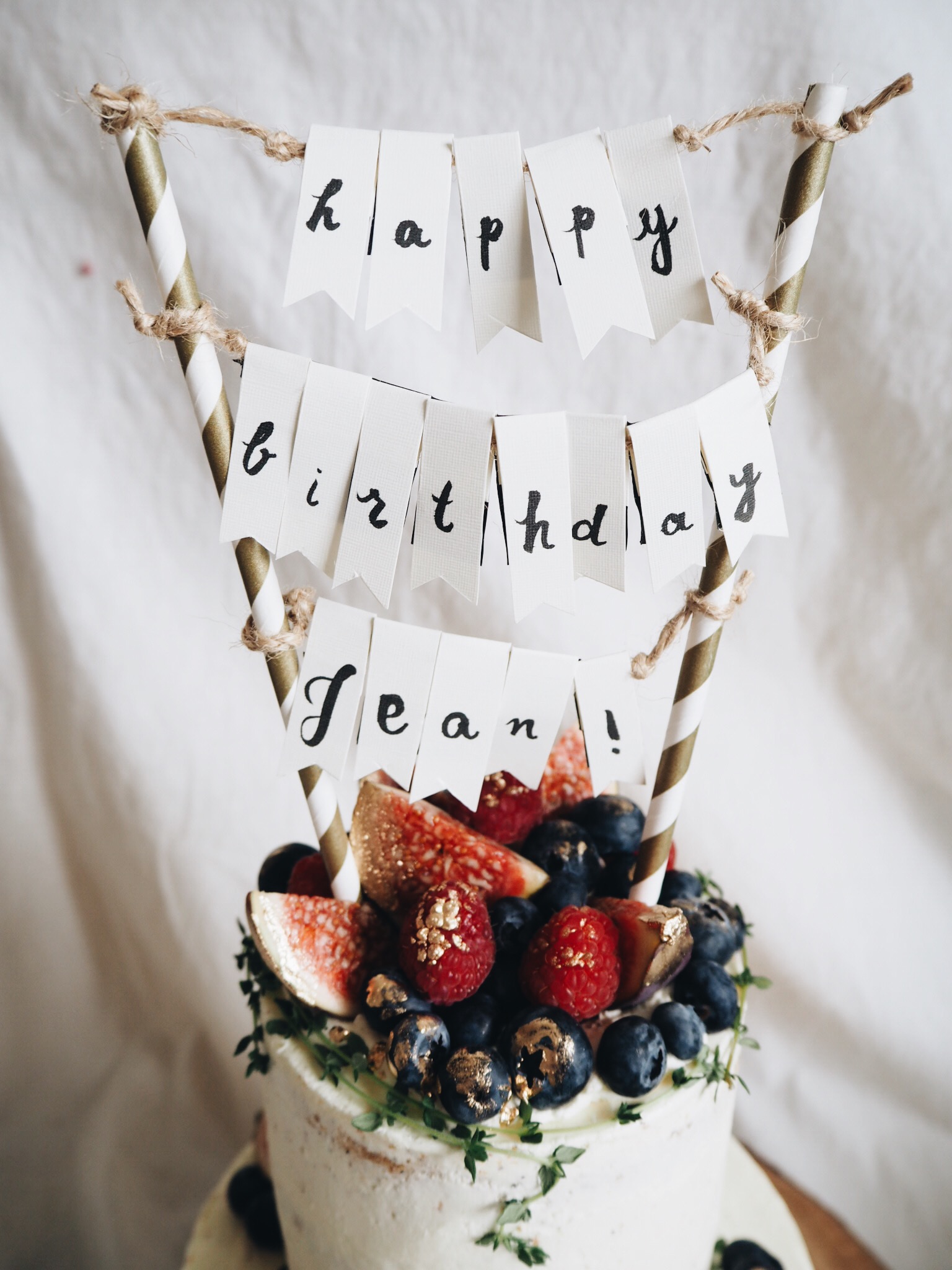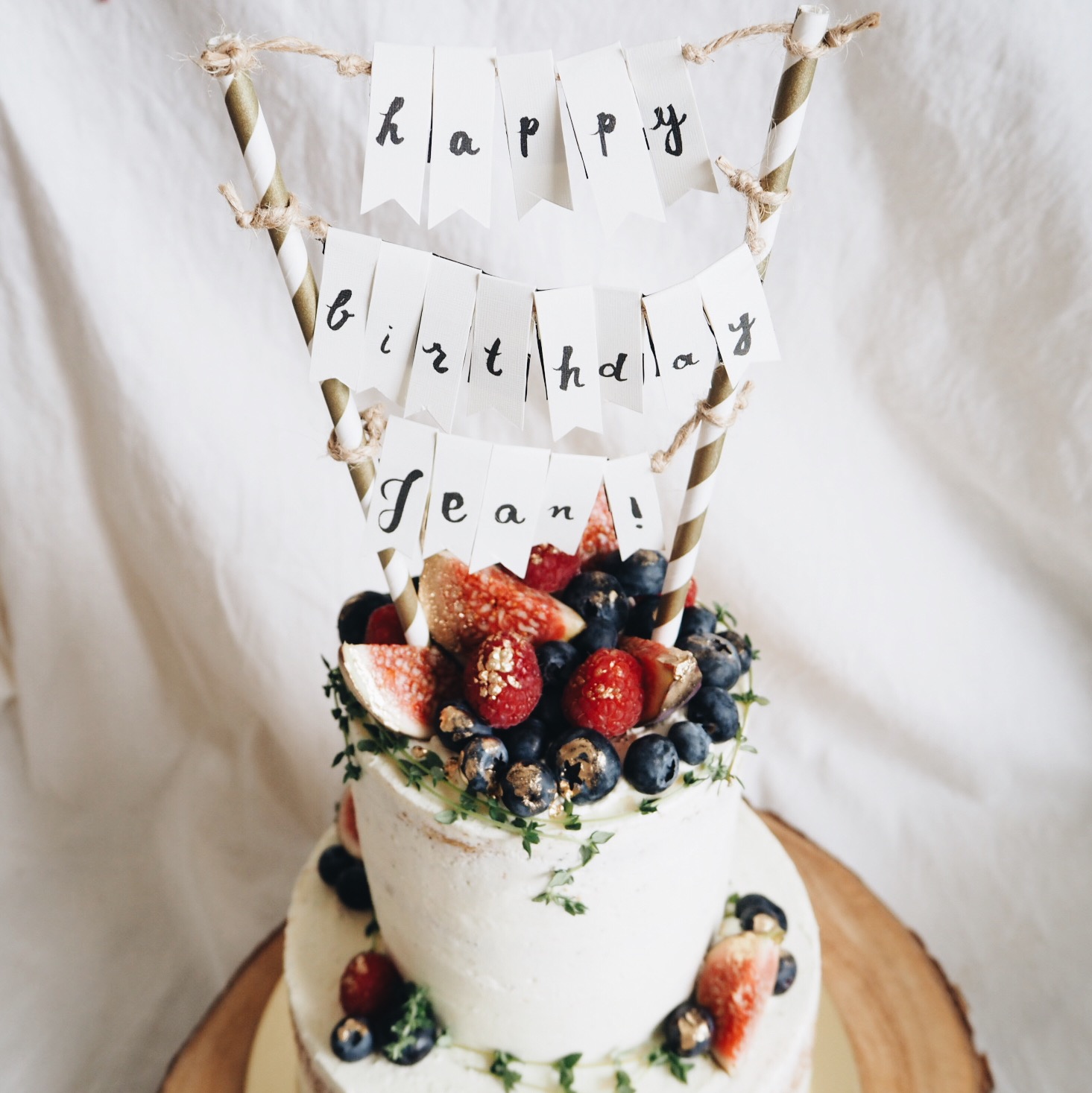 Another birthday cake to C’s other boss. This time in earl grey lemon, lemon curd and buttercream topped with lots of blueberries, figs and raspberries and our handmade bunting.