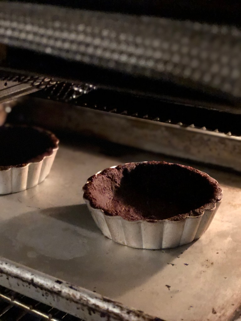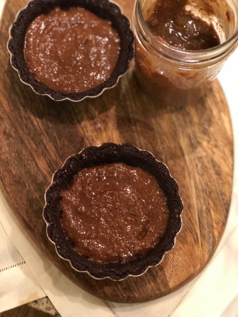 Spread ~ 1 TBSP hazelnut butter at the bottom of the tart
