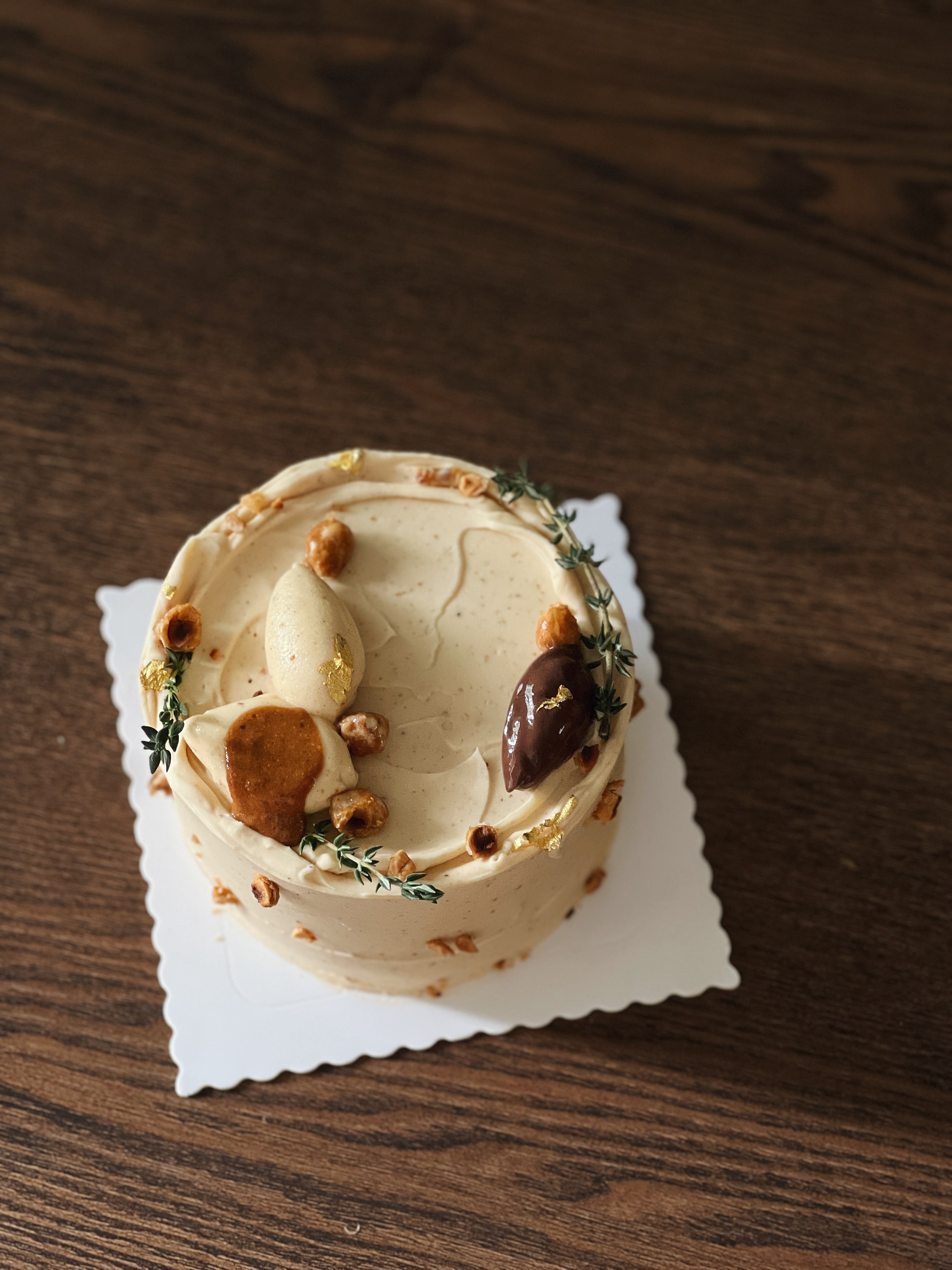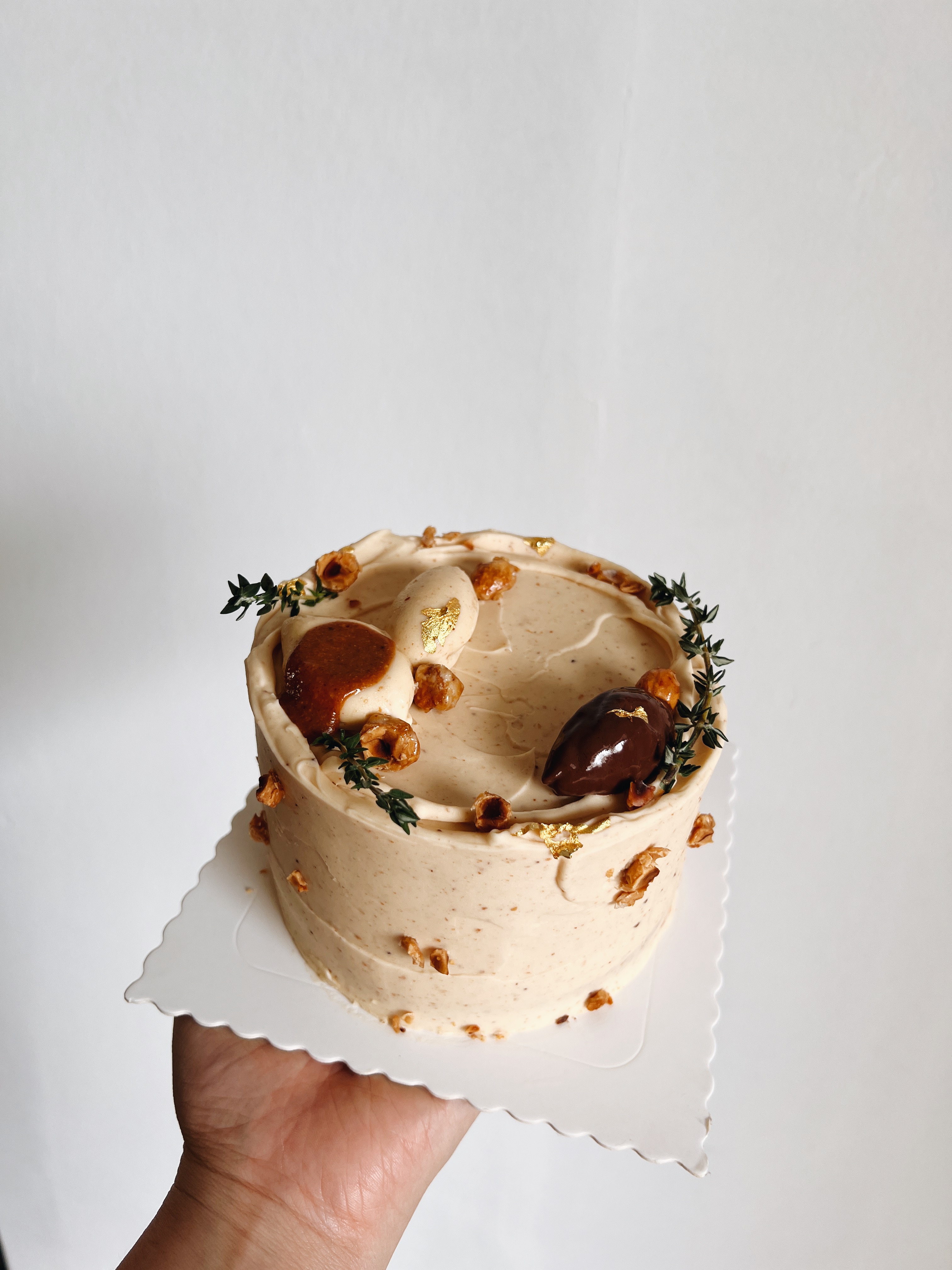 Earl grey gives it a citrusy note that pairs so well with hazelnut and milk chocolate. This cake is made with earl grey milk tea cake layers, sweet and salty hazelnut praline buttercream and earl grey milk chocolate cremeux.