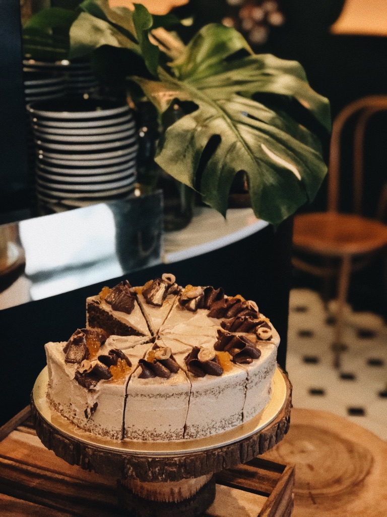 Coffee & hazelnut cake, passionfruit curd, milk chocolate cremeux and coffee buttercream.