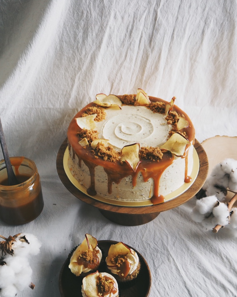 Apple cinnamon cake, spiced apple filling, speculoos buttercream and salted caramel.