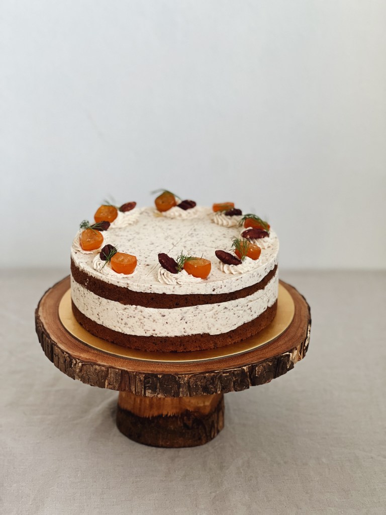 Carrot cake, cream cheese chantilly, buttered pecan buttercream.