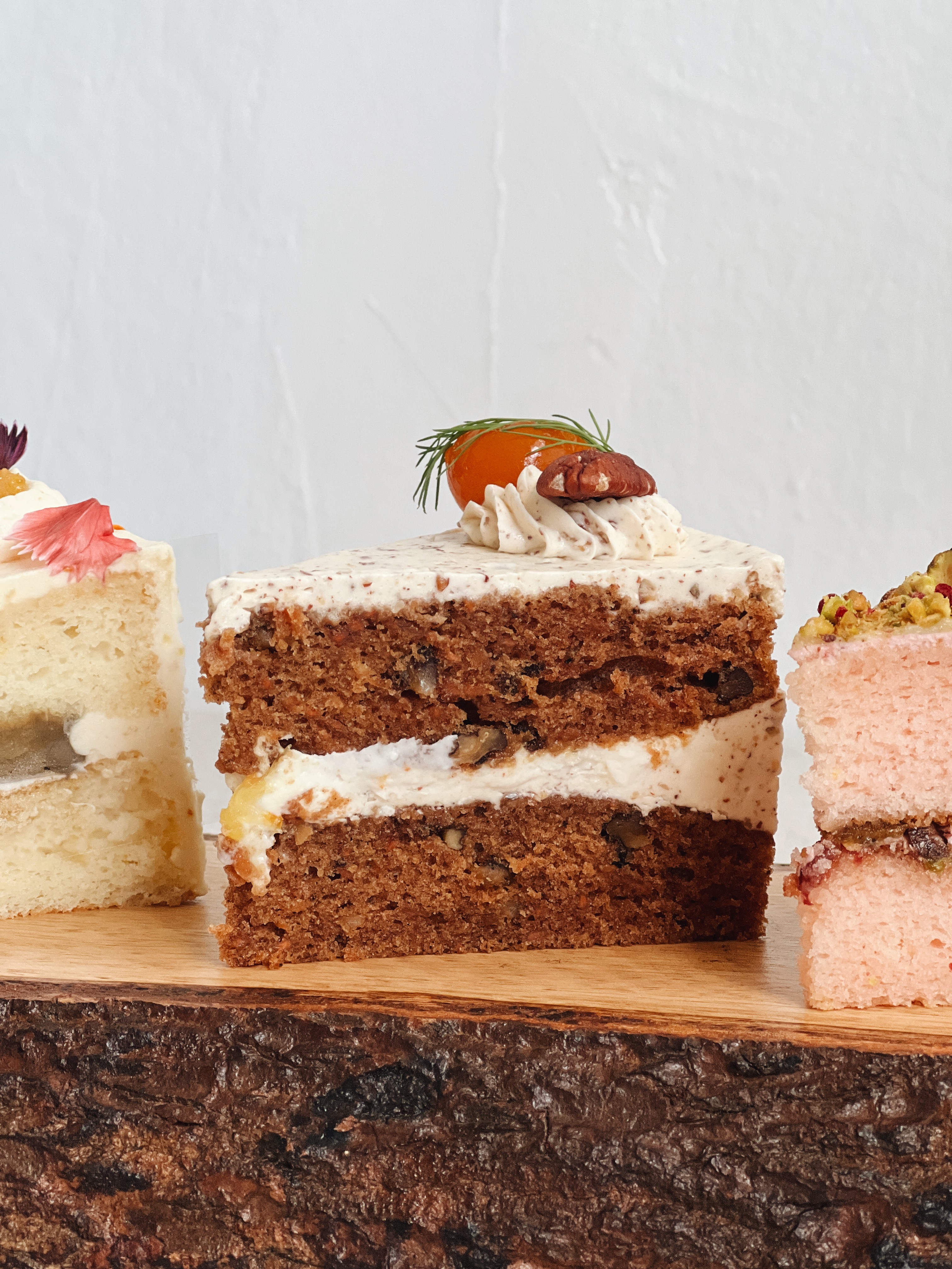 Carrot cake, cream cheese chantilly, buttered pecan buttercream.