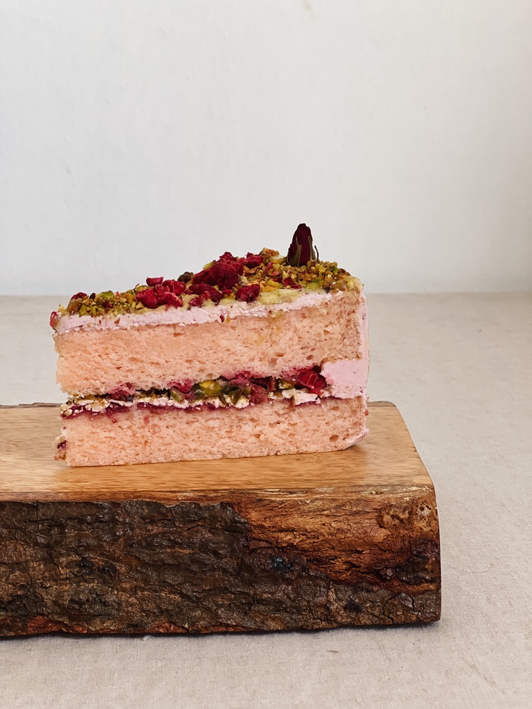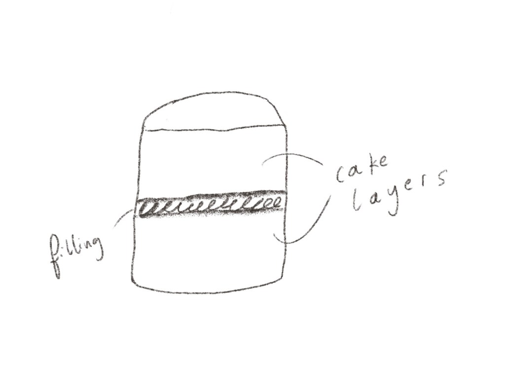 If you have chosen the petite, it would mean that you would receive a cake that is 5″ in diameter with 2 layers of sponge cake and 1 layer of cream in the center and the rest of the cream on the exterior.